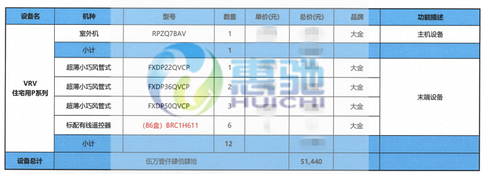 大金空調(diào)系統(tǒng)配置表