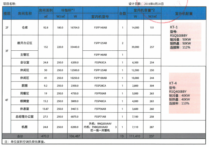 空調(diào)系統(tǒng)配置表