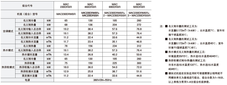■ 機(jī)組集空調(diào)制冷、空調(diào)制熱、制冷熱回收、熱泵制熱水、空調(diào)優(yōu)先熱水五種模式于一身。