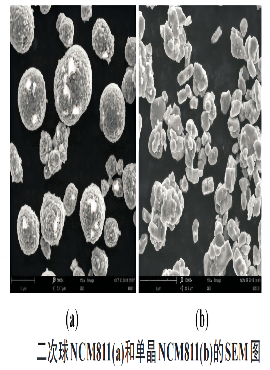 三元正極材料形貌主要有單晶和二次球兩種形貌,二次球顆粒正極材料在極片輥壓和循環(huán)過程中顆粒容易發(fā)生破碎,導(dǎo)致電芯阻抗增加,循環(huán)衰減加快和釋氧氧化電解液產(chǎn)氣等一系列問題。而使用單晶三元正極材料可以避免顆粒破碎帶來的負(fù)面問題,而且單晶三元表面殘堿低,電池漿料容易制備,具有電芯產(chǎn)氣小和循環(huán)性能好等優(yōu)點(diǎn)。圖1展示了電極的電化學(xué)窗...