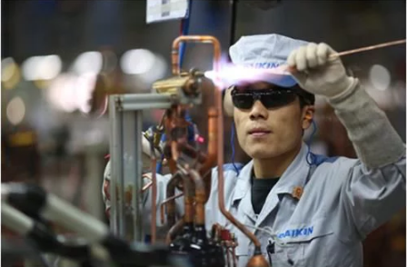 大金家用空調(diào)的整個生產(chǎn)過程中,90%以上的重點工序設(shè)備為全球同步引進或為大金專屬定制,一條20多道工序的生產(chǎn)線,質(zhì)檢環(huán)節(jié)達(dá)到16個。如果一臺產(chǎn)品在某一檢測環(huán)節(jié)存在疑點,這臺空調(diào)就會被工作人員“拿下”單獨進行質(zhì)量完善,然后再從檢測第一關(guān)開始,重新進行全流程的質(zhì)量檢驗。