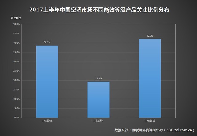 2017年上半年中國空調(diào)市場不同能效等級產(chǎn)品關(guān)注比例分布