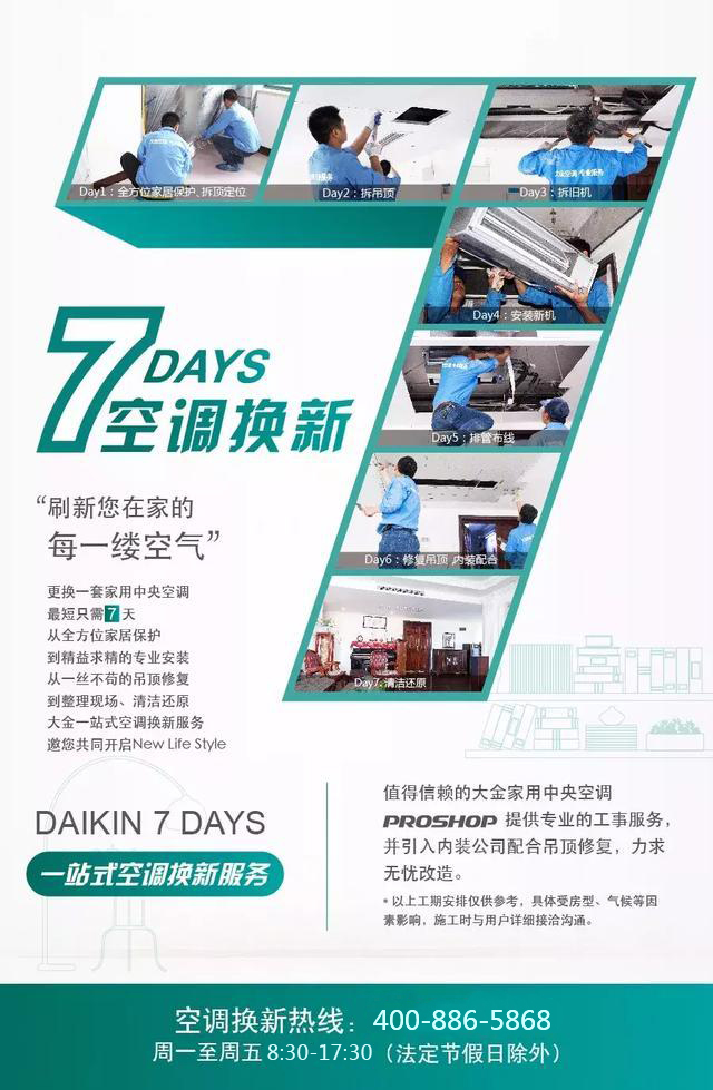 家用中央空調(diào)想改造?今后您不必再為此擔(dān)心,放心交給大金PROSHOP家用中央空調(diào)專業(yè)店,7日無憂改造,從保護(hù)到拆機,從安裝到修復(fù),專業(yè)的團隊帶您開啟專屬您和家人的NEW LIFE STYLE。